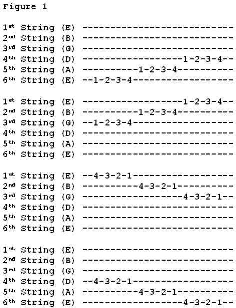 Not only is the following drill great for increasing your speed (as is "Wipeout" you learned last week), it will greatly develop your finger strength, especially your little-used pinkie. Practice this even 3 minutes (the more the better of course!) every day and I guarantee you will reap the benefits. Again, consistency is the most important thing here. The more and more you hammer away at a certain technique, the sooner you will master it.